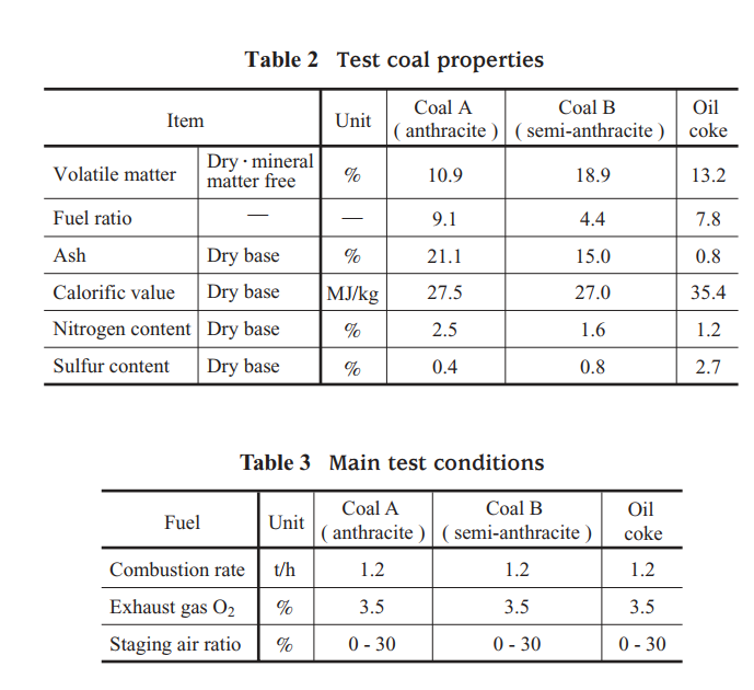 Figure 8 and Fig. 9 show combustion characteristics of the high-temperature gas recirculation burner. Figure 8 shows the results when coal B ( semi-anthracite )