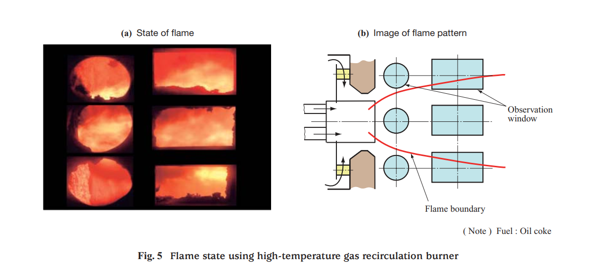 % or higher through combustion of low-volatile fuels with the high-temperature gas recirculation burner.